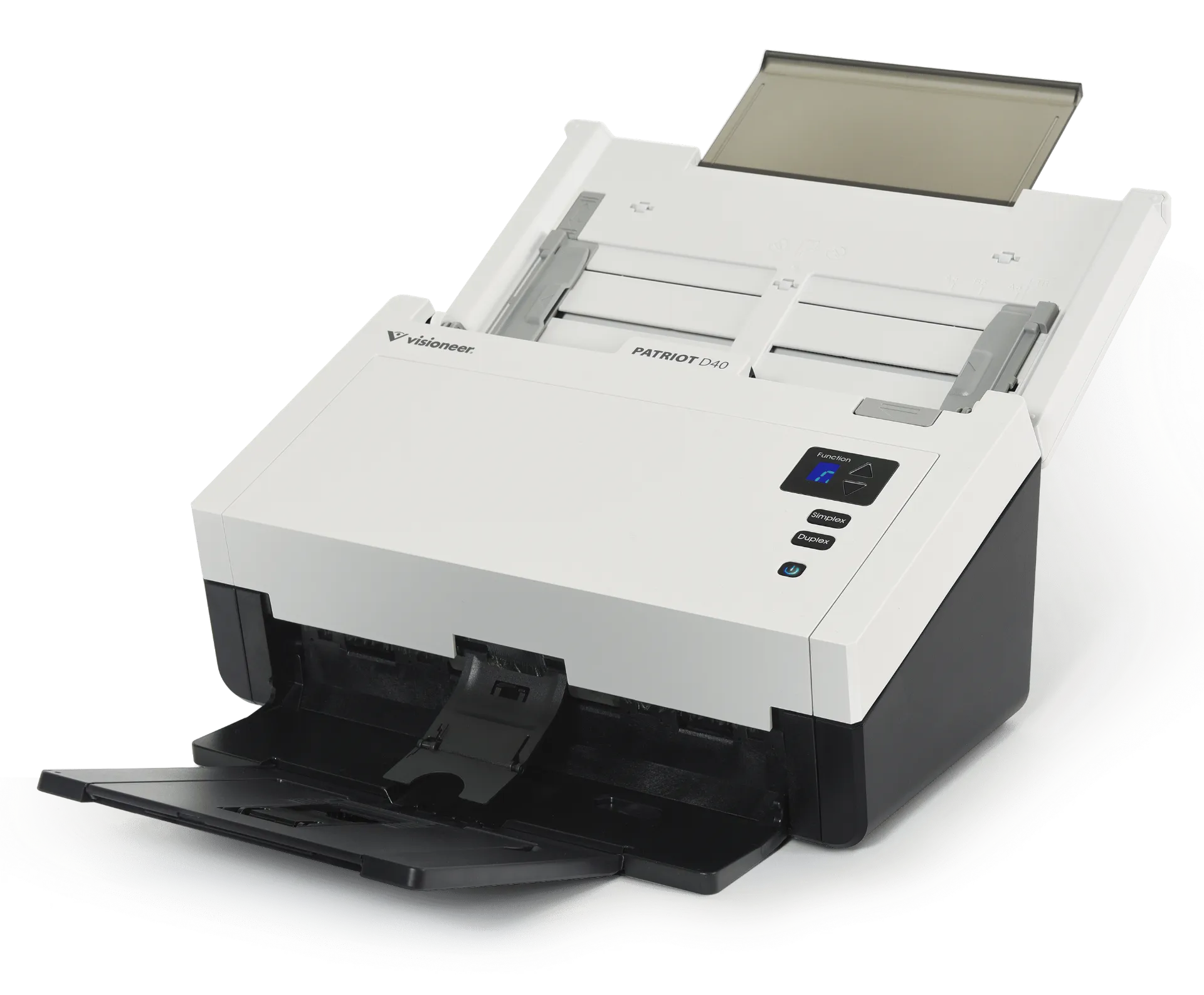 The Visioneer Patriot D40 Scanner is a high-speed, duplex color document scanner designed for efficiency, reliability, and seamless document capture in any office environment. With a compact footprint, it fits easily on any desk while delivering powerful performance for both small businesses and large enterprises.